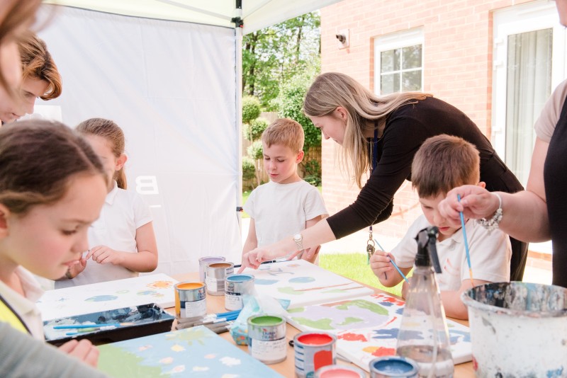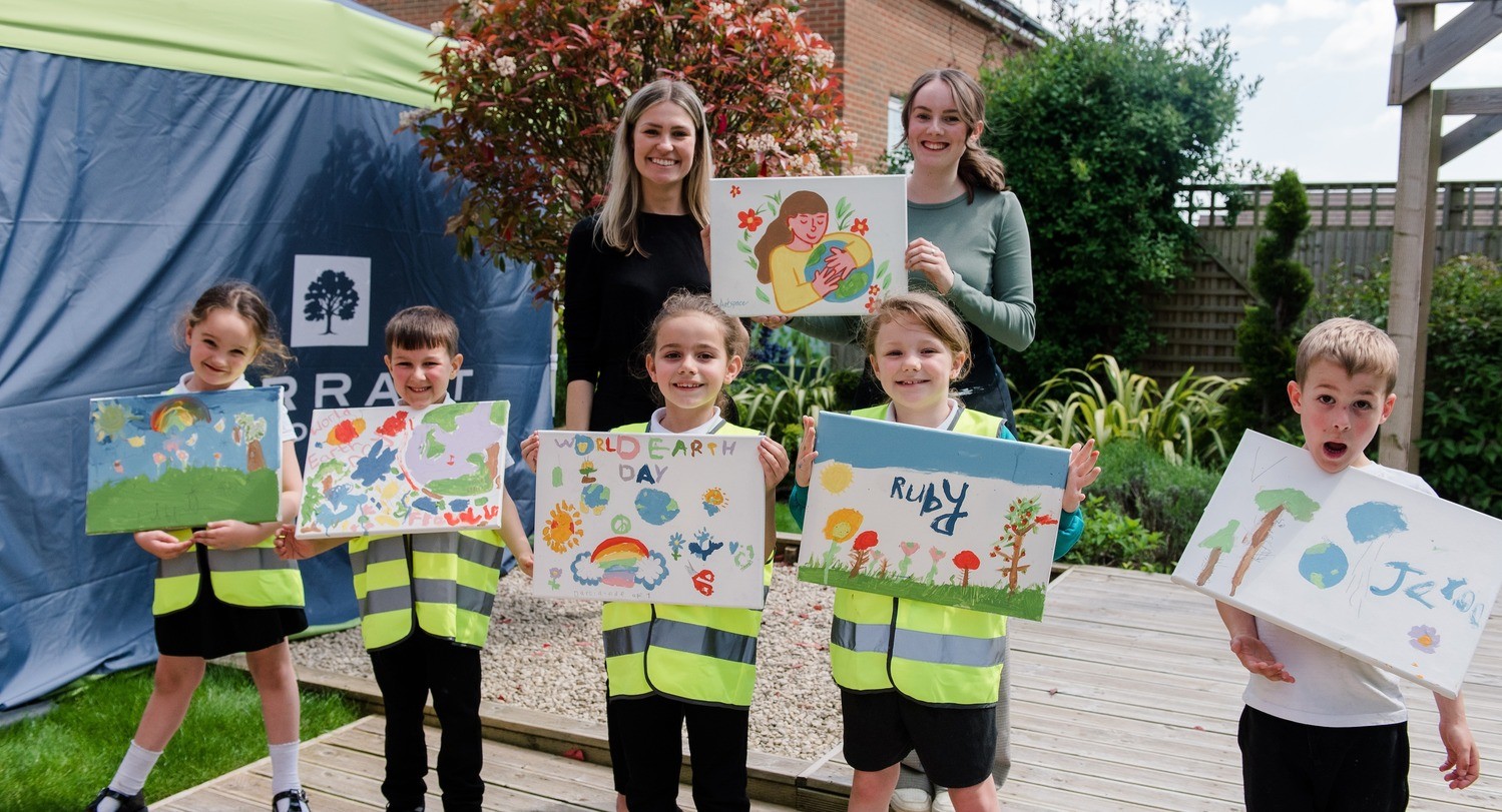 We teamed together with Barratt Homes and invited pupils from Hartplain Infant School to paint what World Earth Day means to them, in a very sunny show garden at their Harbour Place development in Havant. Our Junior Creative Designer, Emily, had a great afternoon guiding the children with their paintings! They all had very different and lovely interpretations of what World Earth Day means to them.